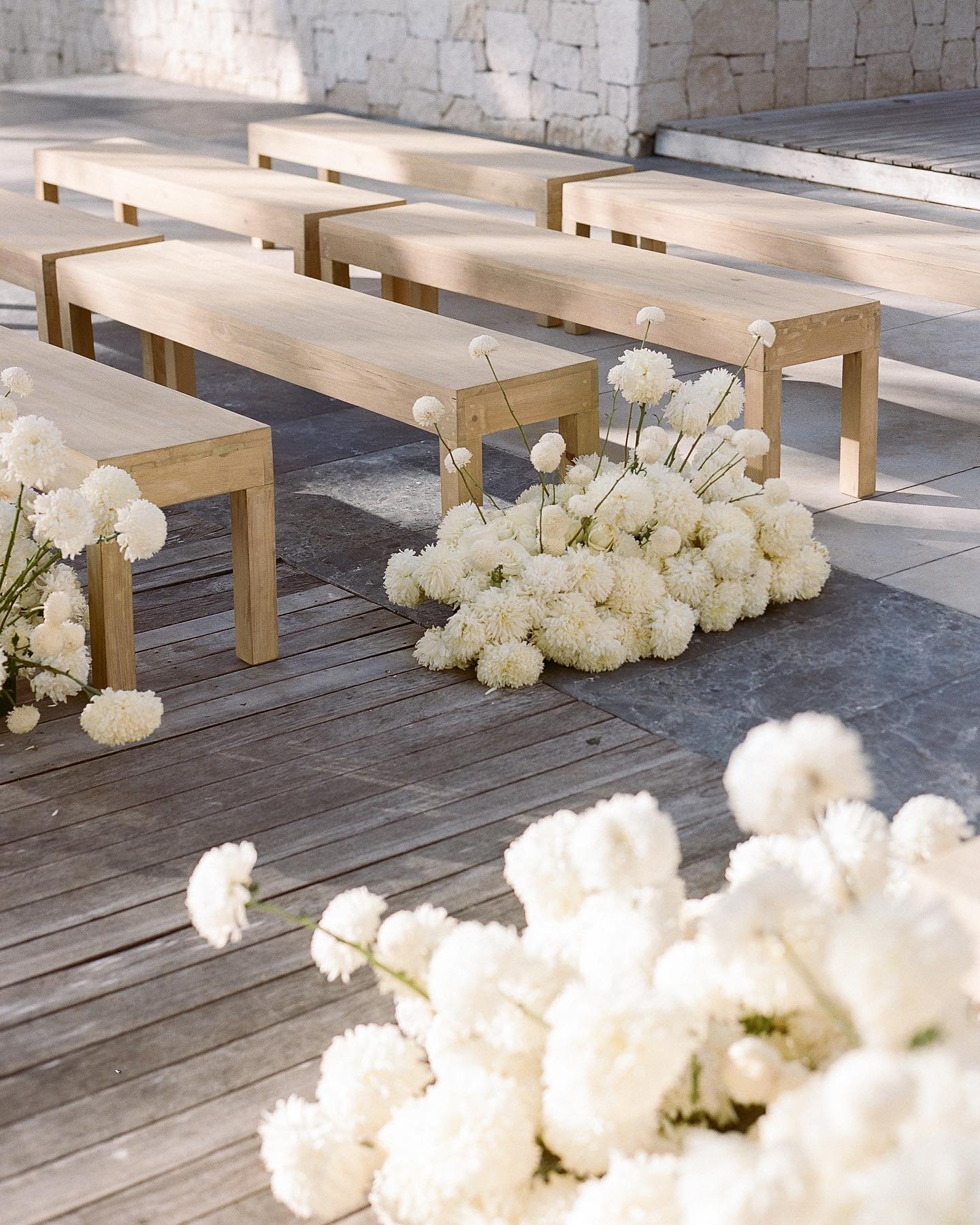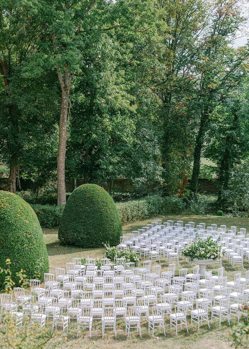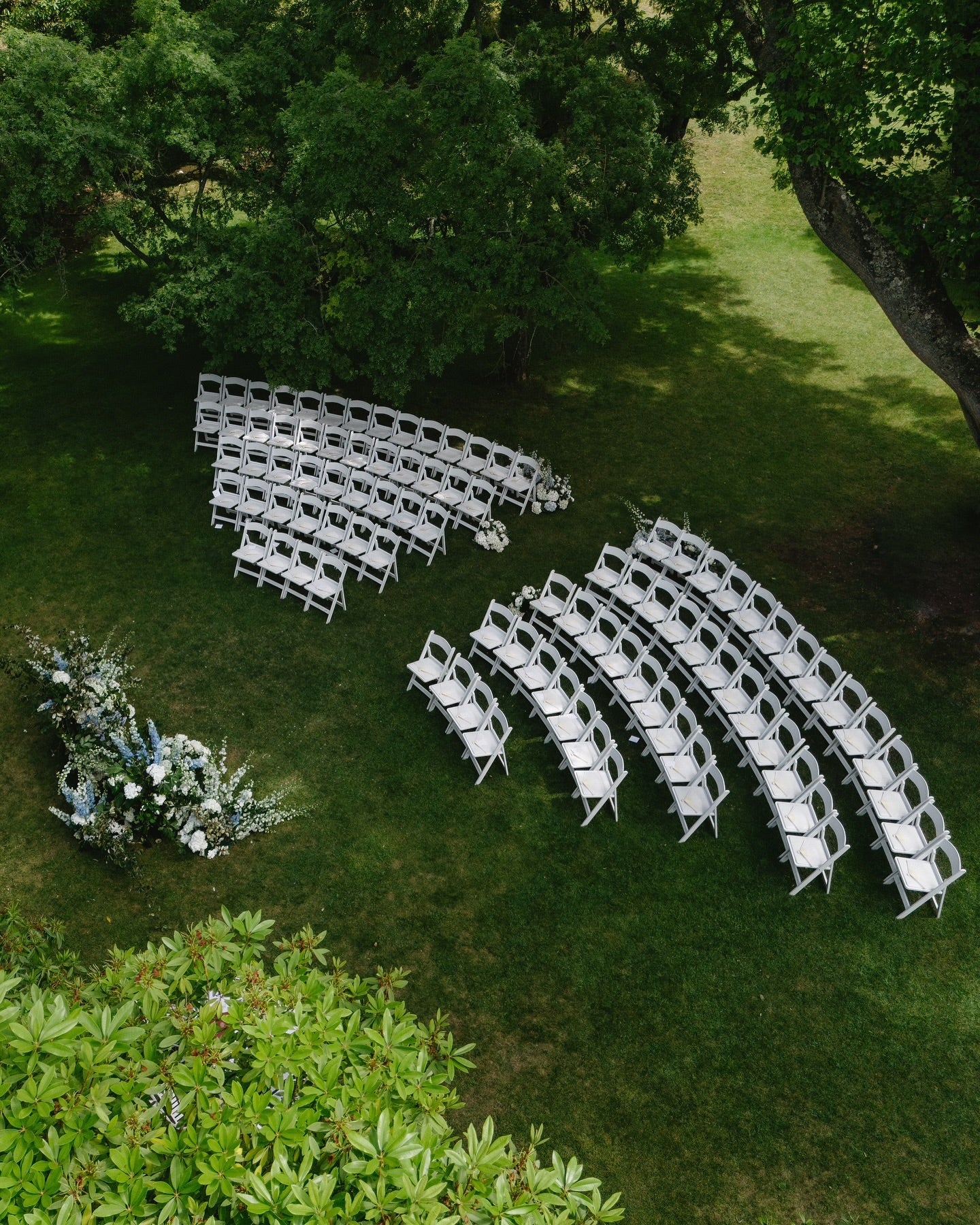 But simple doesn’t have to mean 'to be expected' or boring. When space allows, especially in wide-open settings like beaches or vineyards, you can introduce additional columns of seating to create a more dramatic and expansive look (as shown in the cover photo). This not only accommodates a larger guest count but adds visual rhythm and structure to the ceremony space.