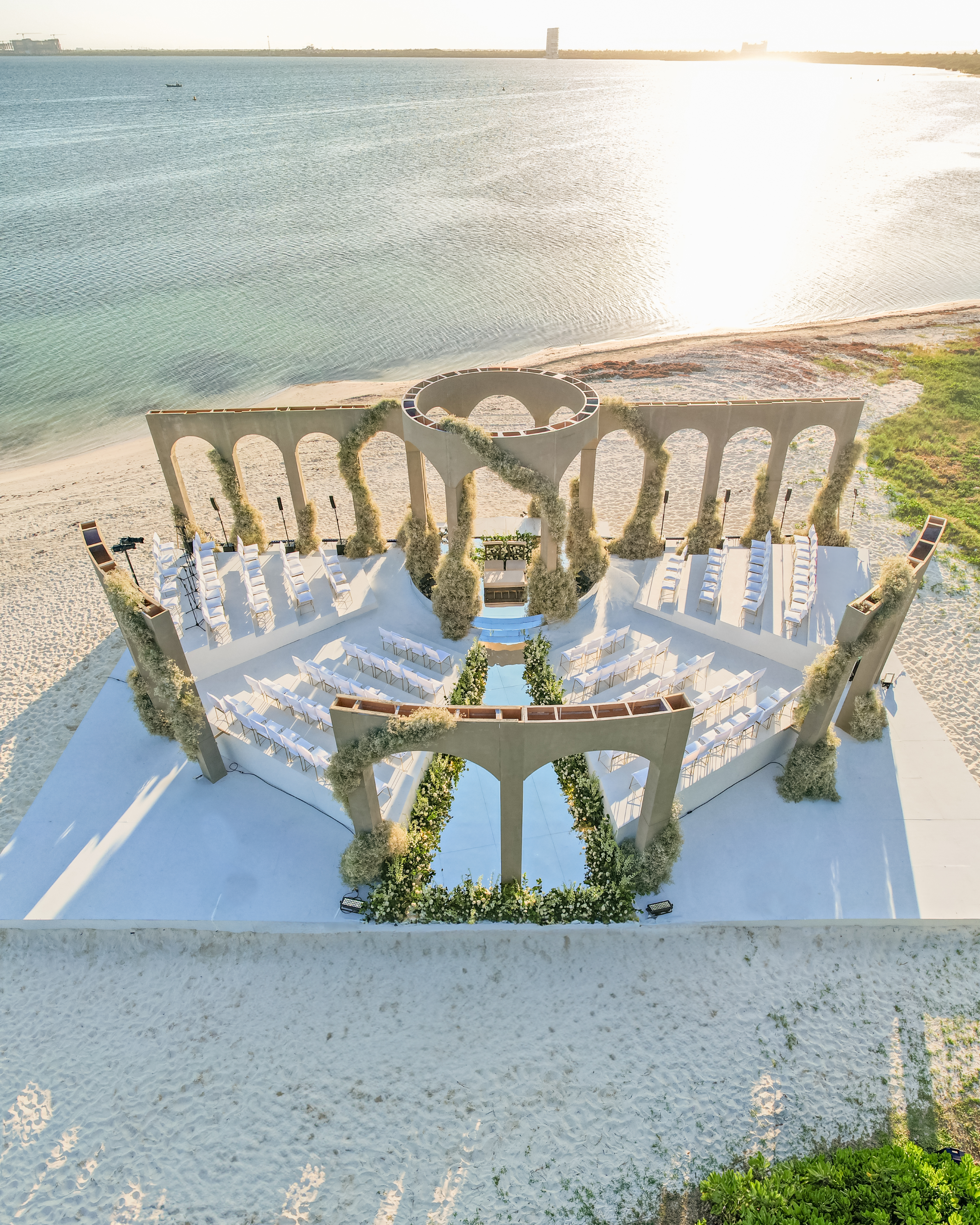 Architectural layouts are defined not by the surrounding environment but by what is intentionally built into the space. Unlike location-inspired designs that adapt to the landscape, this style is about creating a structure - geometric, monumental, or sculptural - that becomes the focal point of the ceremony.