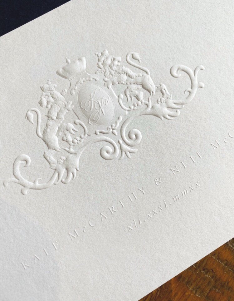 (2) Letterpress printing - requires a custom metal plate which is inked and then pressed into each card, leaving an impression of the design against your fingertips