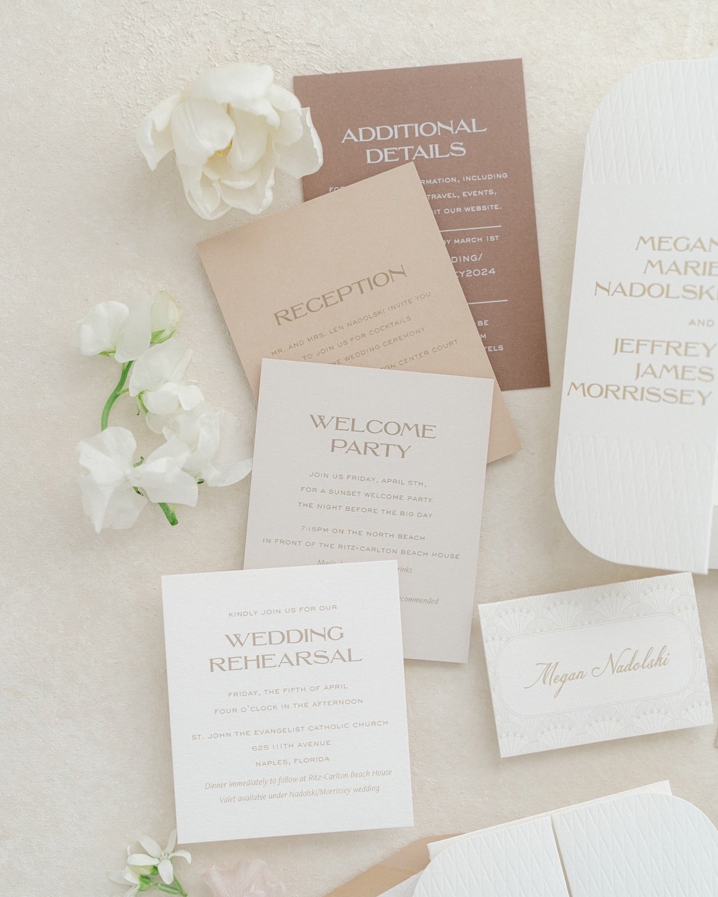 Optional elements are where creativity truly thrives, allowing couples to infuse their personalities and wedding theme into the invitation suite. From unique enclosures to unexpected presentation styles, these details can elevate the guest experience.
