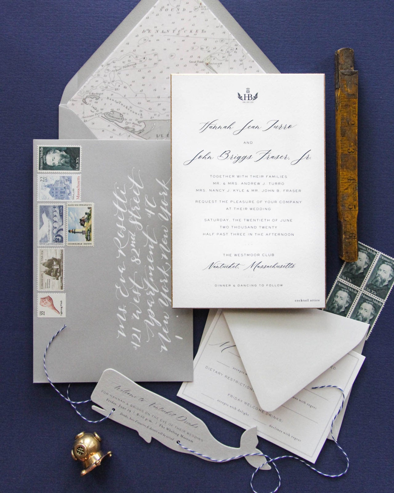 Below is an example of a custom invitation suite designed for a wedding in Nantucket: