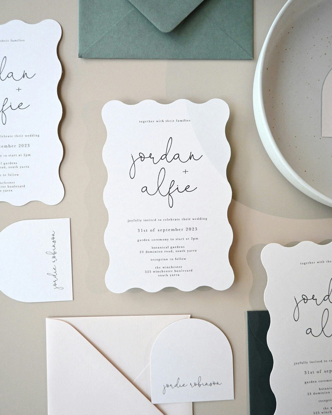 Any other wedding paper (e.g. save-the-dates, thank-you notes, wedding programs etc.) is not part of the wedding invitation suite, but rather part of the wedding stationery suite.
