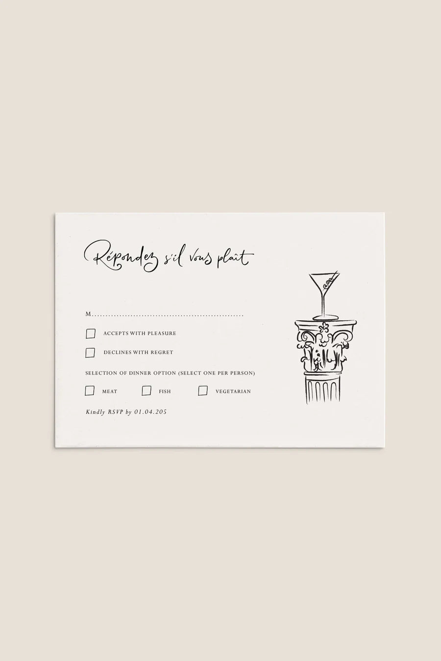 For formal RSVPs, add an "M" at the beginning of the line for guests to use the appropriate honorific (Mr., Mrs., Ms., Miss or Mx) before their name. This ensures you know who's attending and how to spell everyone's name correctly for the seating chart.