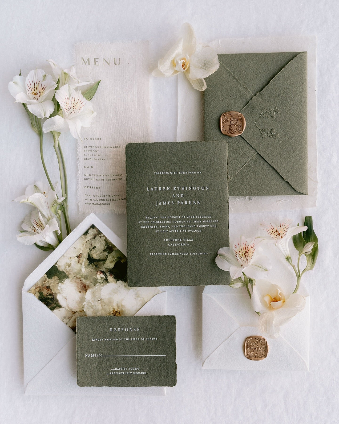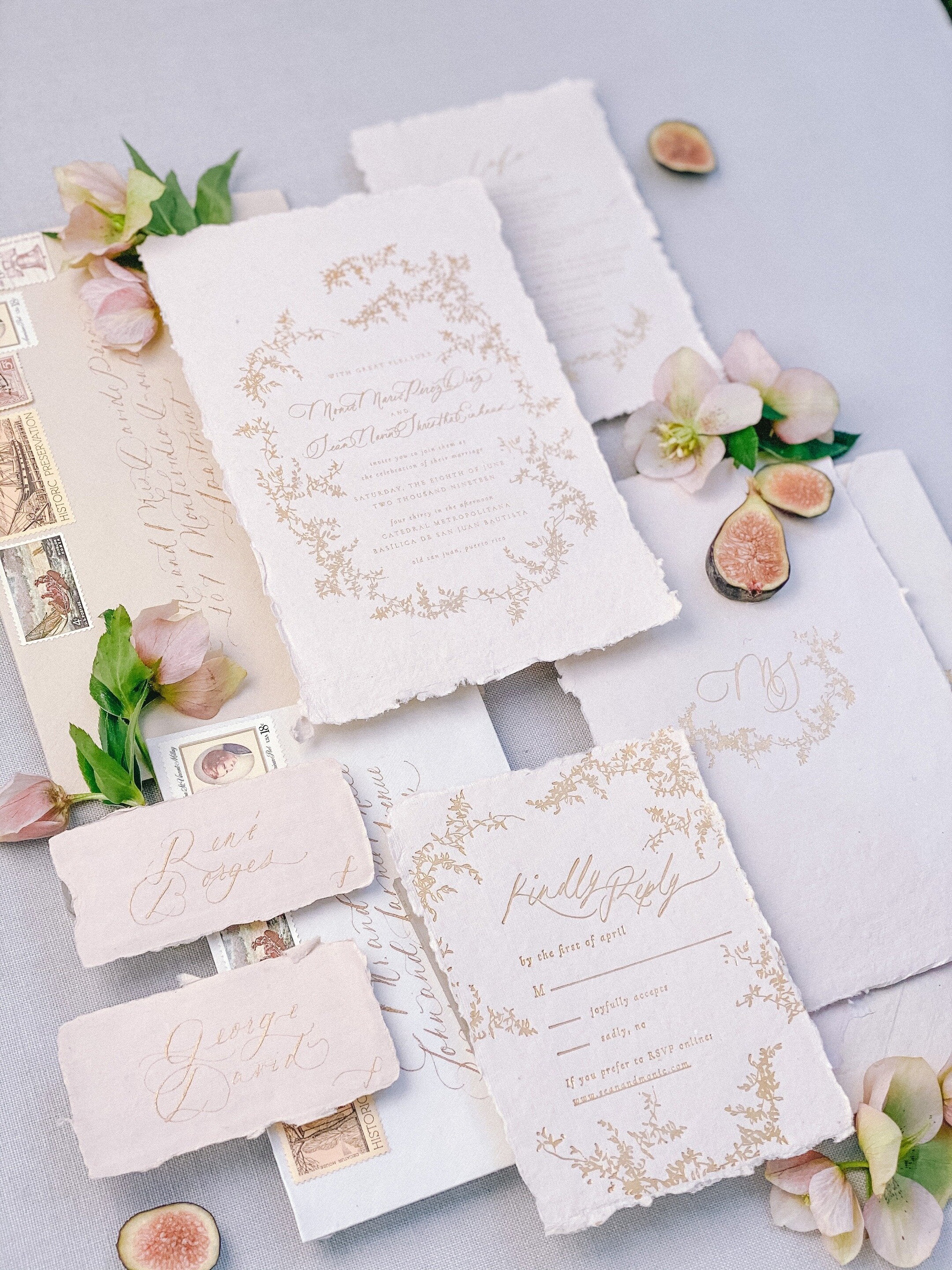 Add unique details like custom illustrations, wax seals, or gold foil accents. Below are examples of the different ways to personalize your wedding invitations, fulfilled by professional artists.