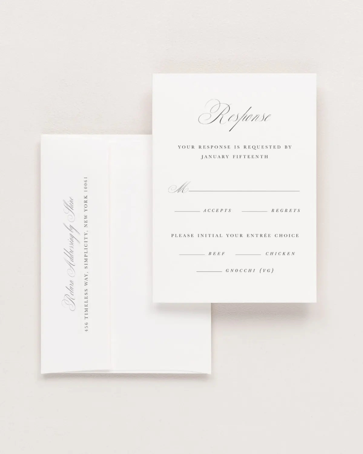 - Option 3 - Offer a space for guests to write the name of their plus-one, ensuring you have accurate seating and meal preferences.
